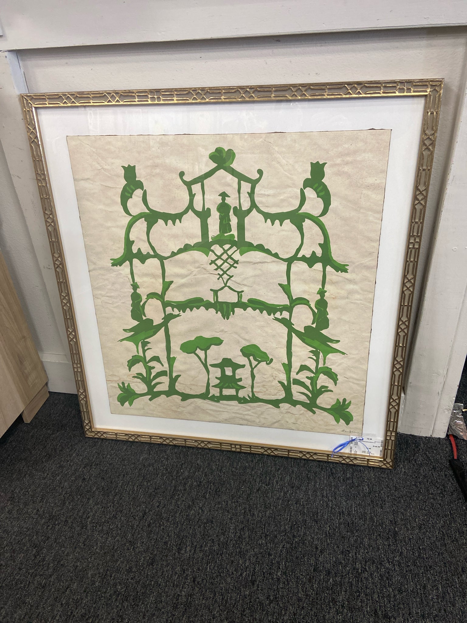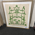 Gold framed green abstract art