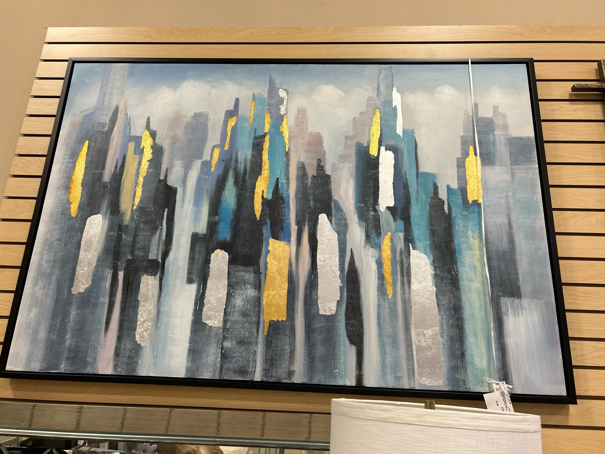 70203 62W 42H Framed Hand Embellished Multi-Color Abstract Canvas