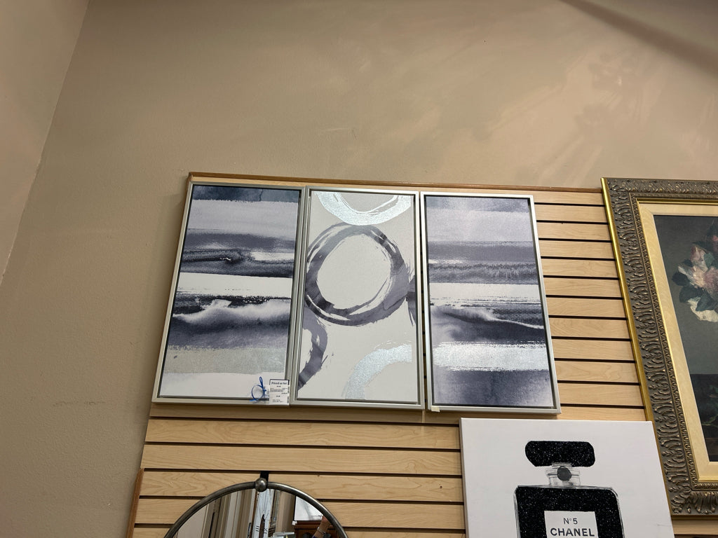 SET/3 Rectangular Silver Floating Frames-Abstract Canvases in blues/greys/silver/White 32X17