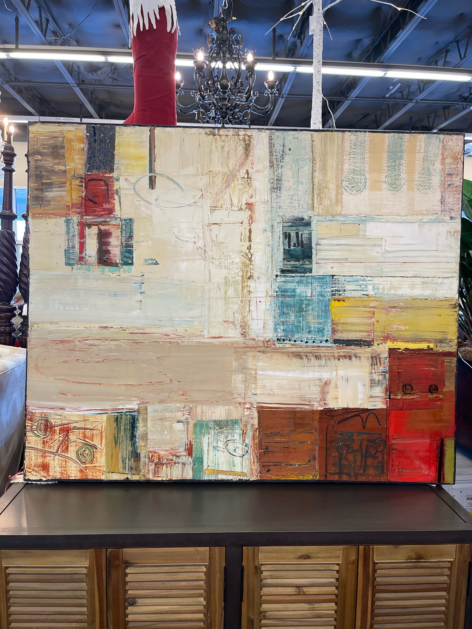 Abstract Original Canvas Teal, Blue, Rusty Red & Cream by Christina Wayman 2007