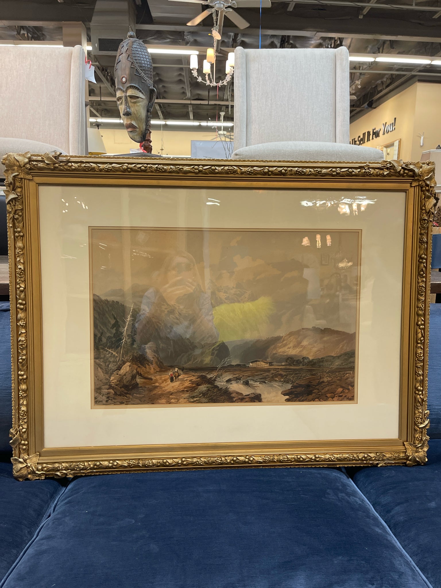 American West Landscape Print Matted & Framed in Gold 39.25"W 29.5"H