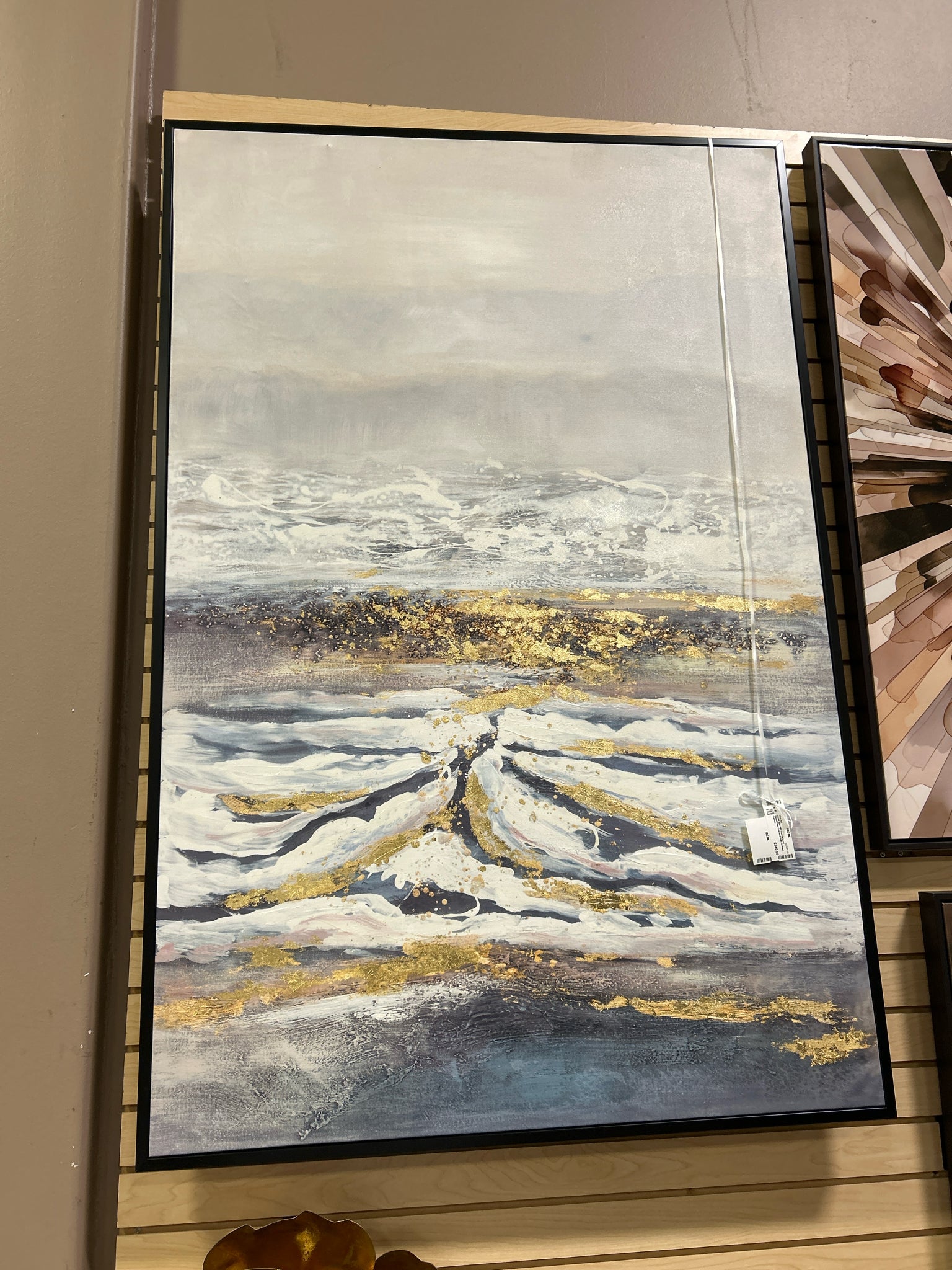 70144 40W 60H Framed Hand Embellished Gray and Gold Abstract Canvas