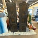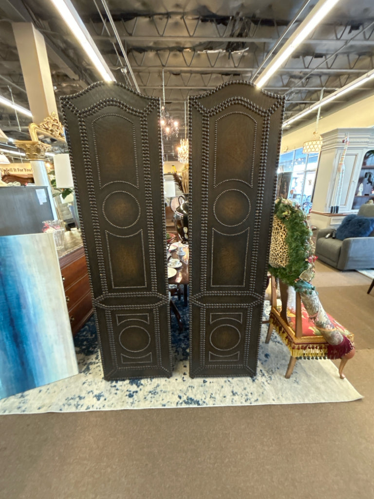Set of 2 Arched Top Dark Brown Faux Leather w/Bronze Nailhead Accents 82.5"H 22"W