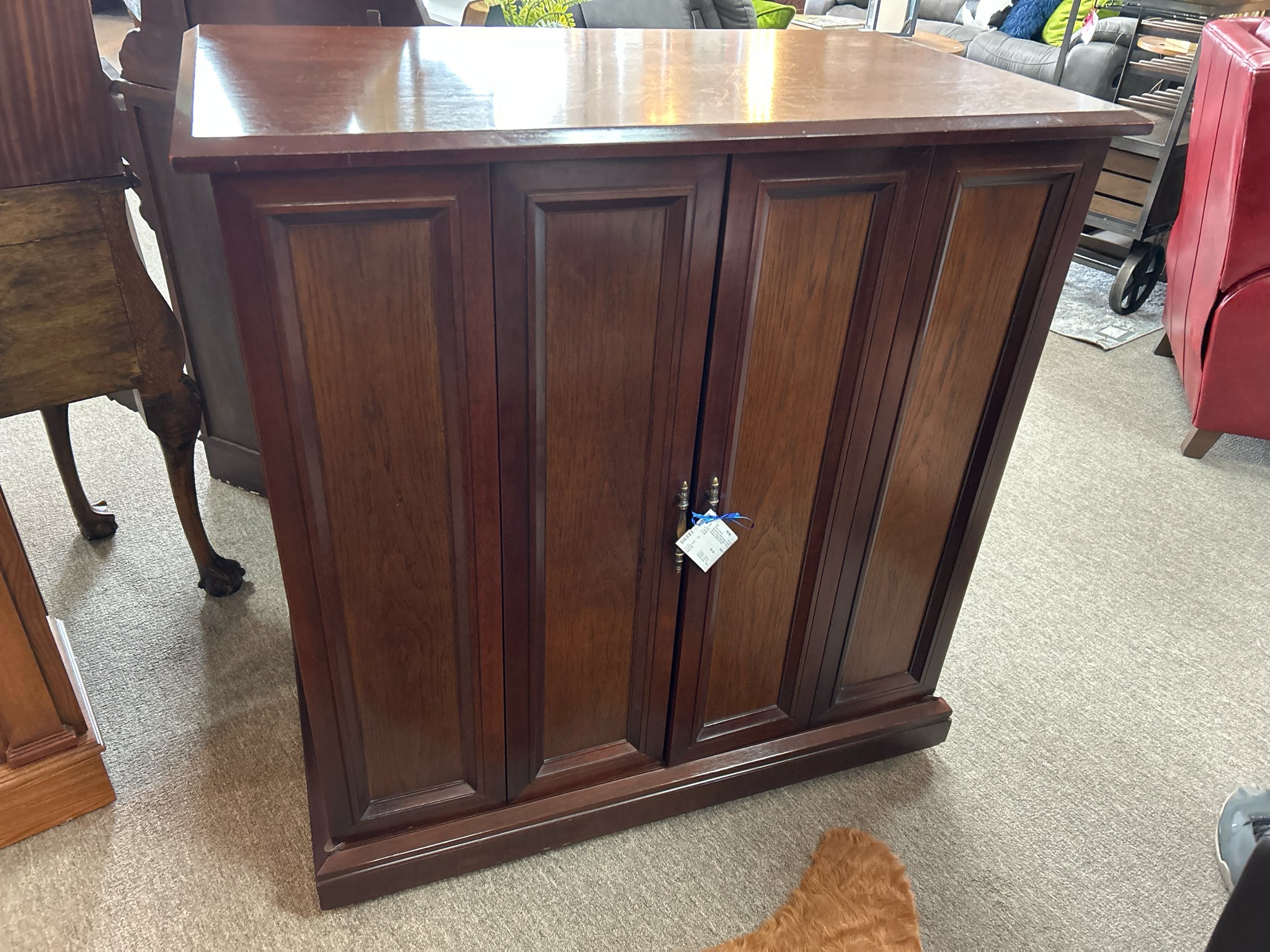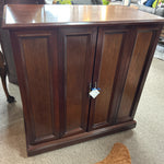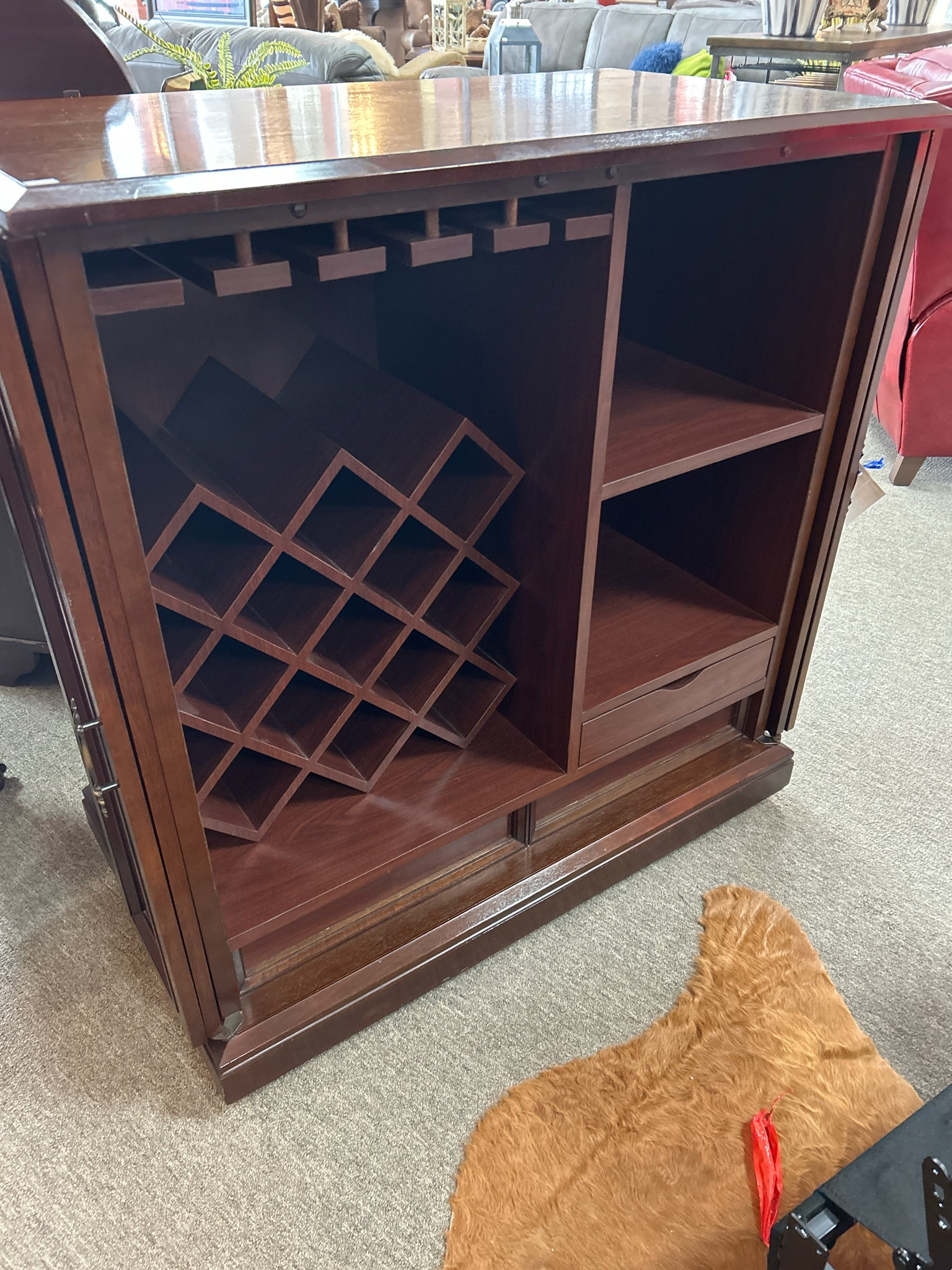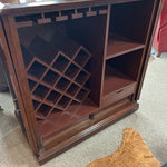 Solid Wood Wine Cabinet, 2 Fold-Back Doors, Interior Wine Rack, 1 Drawer. On Wheels. 40x22 1/2"x42"