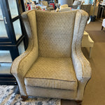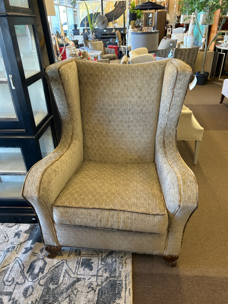 Tan w//White Stitched Tile Pattern & Solid Gold Velvet Trim Carved Dk. Wood Legs